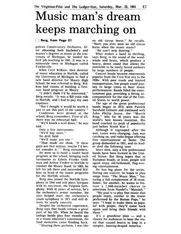 July 7, 1985 at Norfolk’s Town Point Park. Maestro Berg conducts the Winds until his passing in 2000.